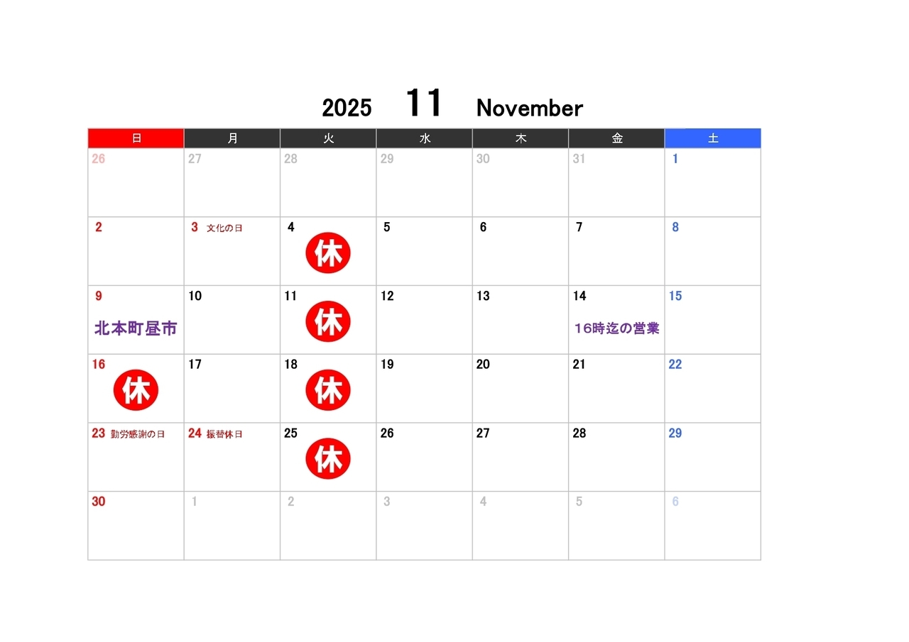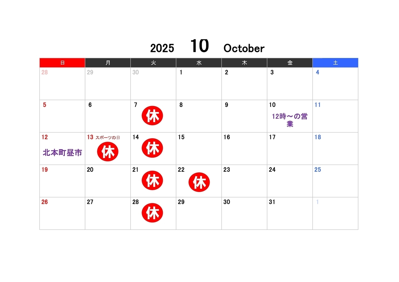 休業日 | 火曜日(日曜日及び祝日は要確認) |