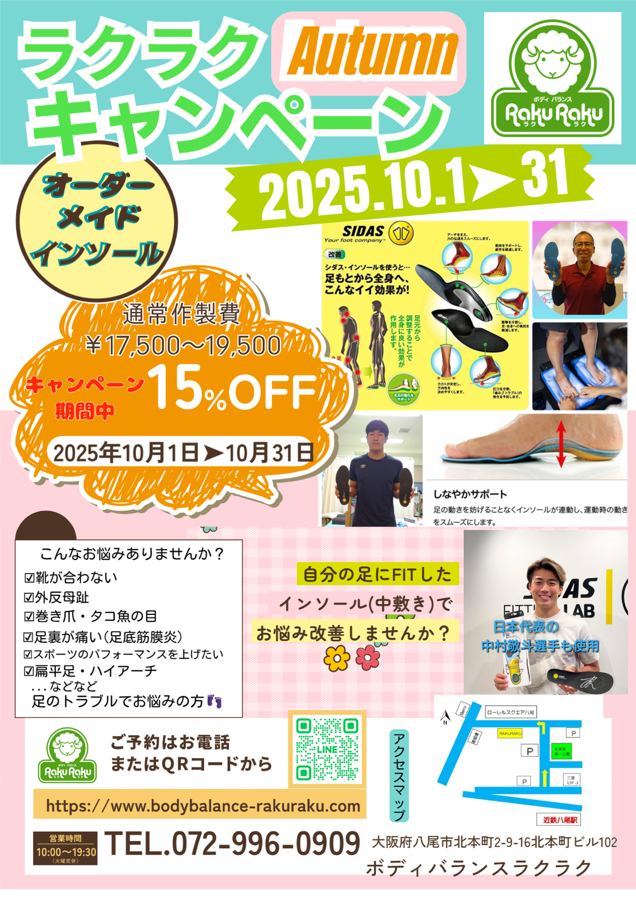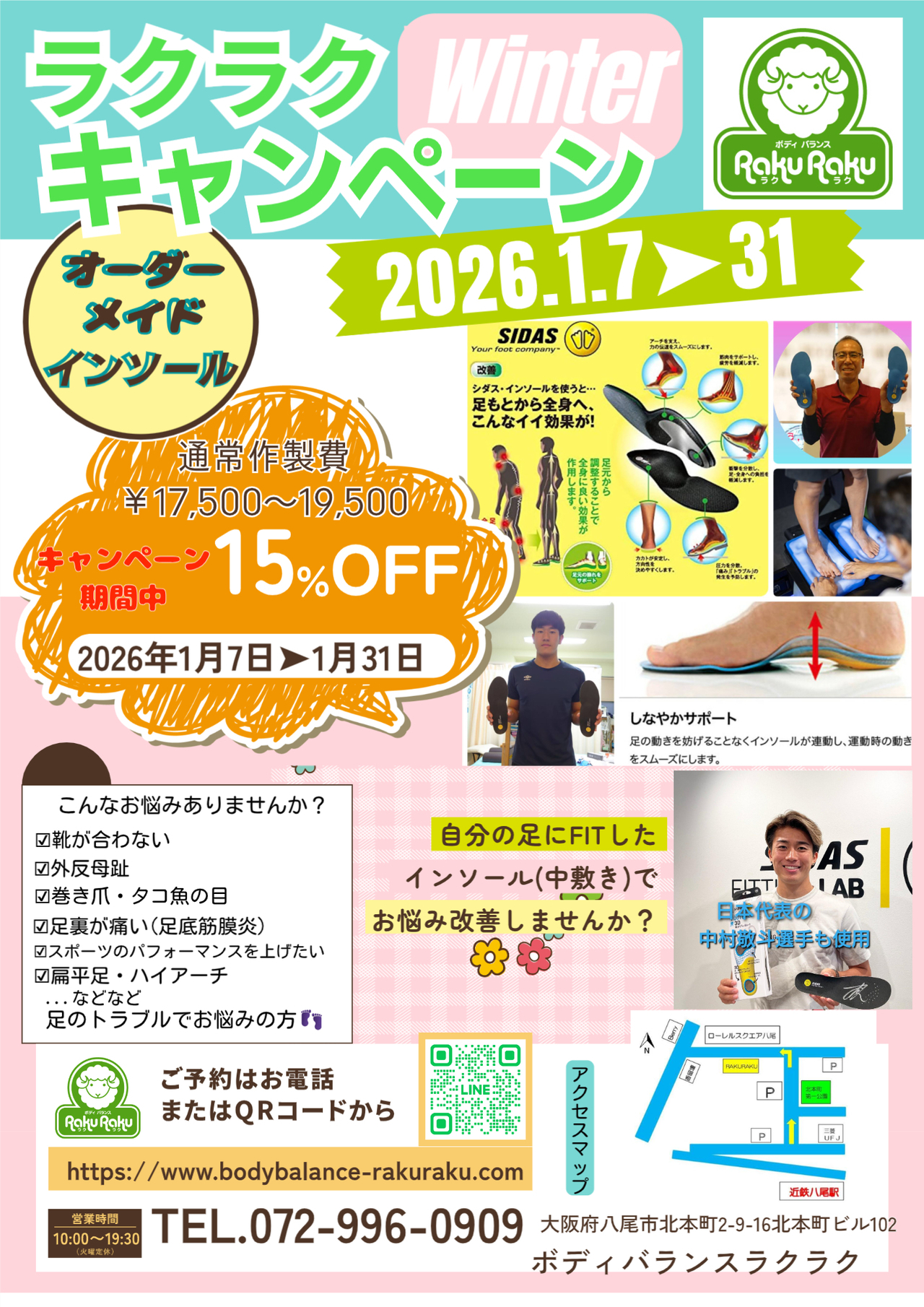 近鉄八尾駅徒歩約3分のボディバランスラクラクは、大阪府八尾市の足専門整体院です。足に携わって20年の実績を元に、足から体のバランスを整えていく専門整体院です。体の不調と足の状態は深く関係しています。